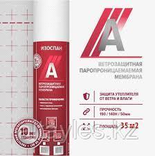 Изоспан A — термоскрепленный полипропиленовый нетканый материал. Ветрозащитная мембрана Изоспан A препятствует конвективному движению воздуха через теплоизоляцию, снижая теплопотери. Изоспан A обладает водоупорностью, достаточной для защиты утеплителя и других внутренних элементов конструкций стен от атмосферных осадков, проникающих под наружную обшивку, при этом является паропроницаемым материалом, поэтому не препятствует выходу водяных паров из утеплителя в вентилируемый зазор. Прочность материала способствует устойчивости к механическим нагрузкам на этапе монтажа и в процессе эксплуатации. Свойства материала Изоспан A позволяют применять его в качестве ветрозащиты в конструкциях каркасных стен, стен с наружным утеплением и вентилируемых фасадов. В конструкциях внутренних стен (межкомнатных перегородок) Изоспан A применяется для предотвращения проникновения частиц волокнистого утеплителя во внутреннее пространство здания.